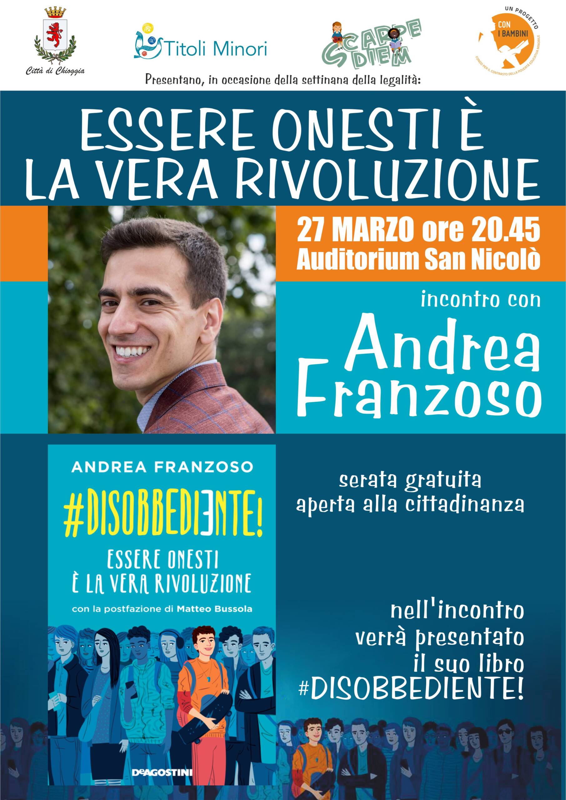 Chi è Andrea Franzoso? Nel febbraio 2015 era un funzionario di Ferrovie Nord Milano e scoprì che il suo presidente usava denaro pubblico per fini personali. Fra le sue spese folli c’era di tutto: viaggi, abiti firmati, gioco d’azzardo online, prodotti di elettronica, articoli per la casa e oltre 180 mila euro di multe. Franzoso segnalò il tutto per le vie interne, ma la risposta fu il classico “Lascia stare”. Allora si rivolse alle forze dell’ordine con un esposto, che innescò un’indagine della Procura di Milano per peculato e truffa aggravata. Il presidente fu costretto a dimettersi e rinviato a giudizio. E Andrea? Ferrovie Nord, anziché premiarlo, lo trasferisce d’ufficio, senza più ruoli di controllo, fino a quando lui, stremato e indignato, lascia il lavoro. Andrea Franzoso, disinteressato e mosso soltanto dalla coscienza civica, ha anteposto l’interesse collettivo a quello personale. Ma poi? Quali risvolti avrà avuto nella vita di Andrea questa storia? Ce lo racconterà proprio lui, mercoledì 27 Marzo, alle ore 20.45 all’Auditorium San Nicolò di Chioggia. Sarà un momento importante che ci farà riflettere, forse indignare…ma sicuramente ci farà SPERARE perchè le storie, anche le più dure, possono avere un lieto fine!